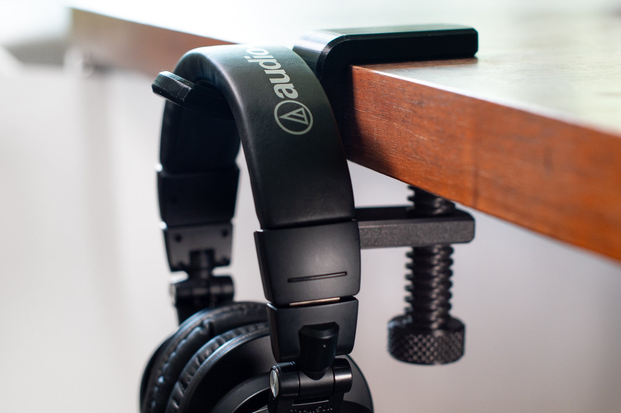 With the headphone hanger protruding 60 mm (2.36 in) out from the desk, this can accommodate most large headphones used in production environments.
